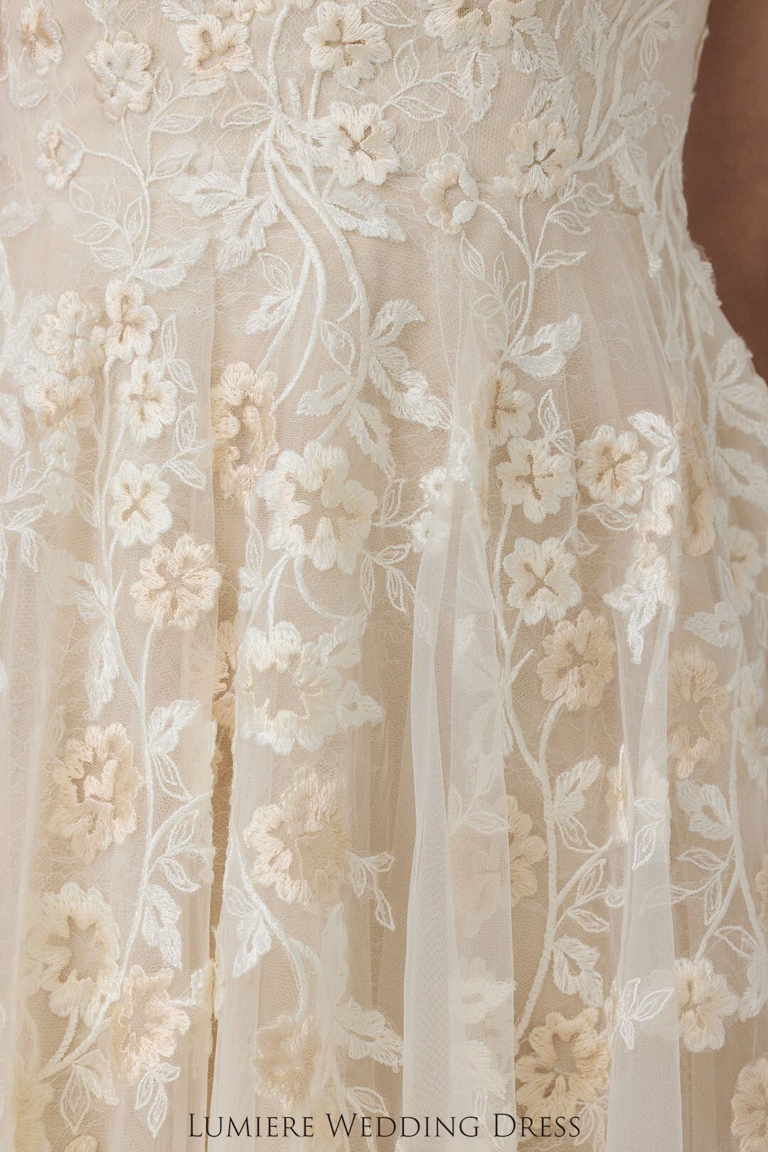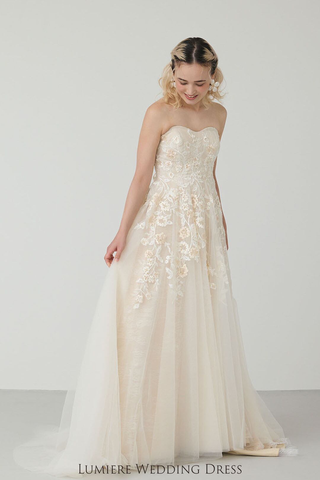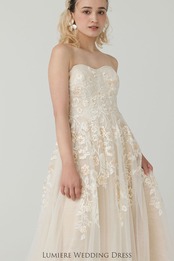 優しく温かみのあるウェディングドレス。