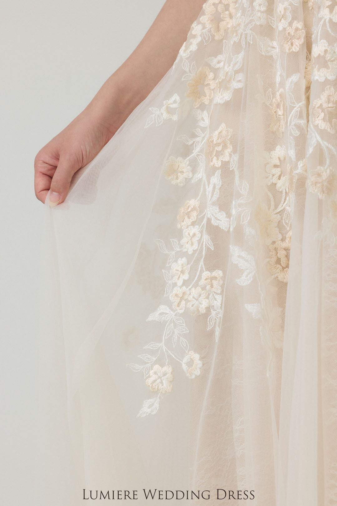 アイボリーカラーのカラー刺繍を使用し